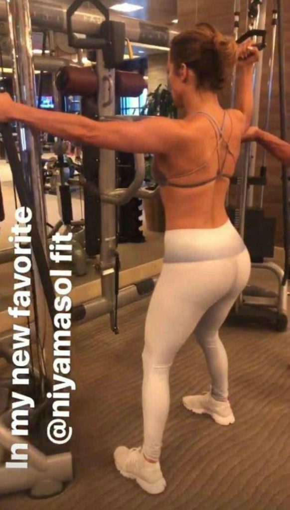 She also hit the cable machine, watching herself in the mirror to perfect her form.